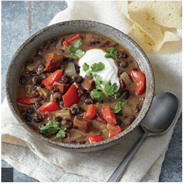 - Dish up rice into bowls, ladle bean soup; top off each serving with a dollop of sour cream/crème fraiche and 1 tablespoon coriander.