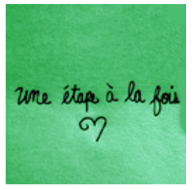 une étape à la foisUne etape à la fois, the saying  goes – one step at a time.