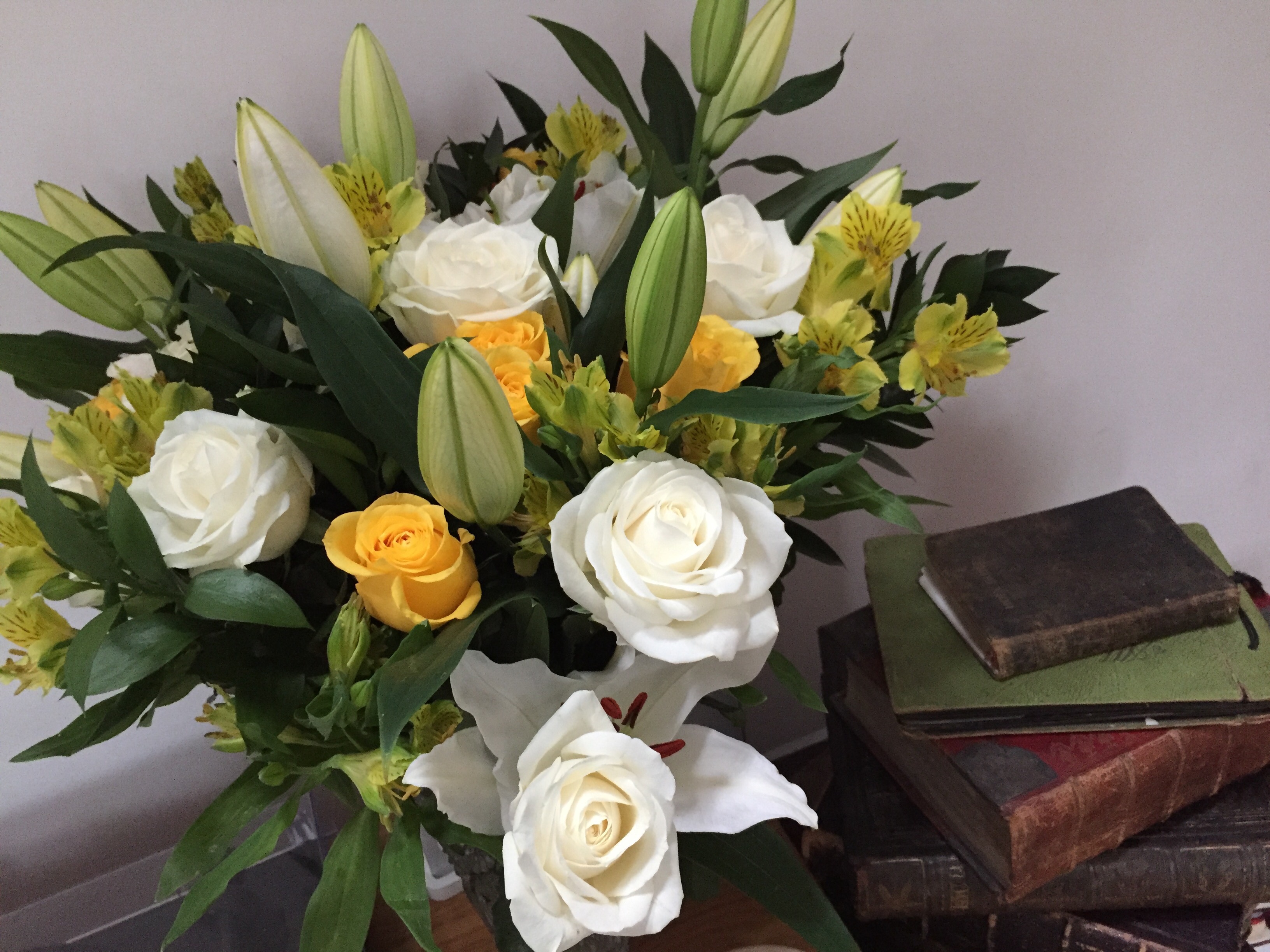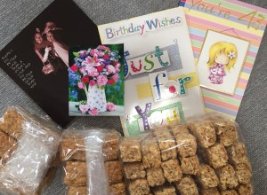 P.p.p.p.s. The flowers (from Hubby) and many cards I received (in pics) made me feel super special last week. Thanks peeps. Thanks also to one of my nieces who found a ‘You’re 4’ card, cut out a 3 in gold paper and stuck it next to the 4.