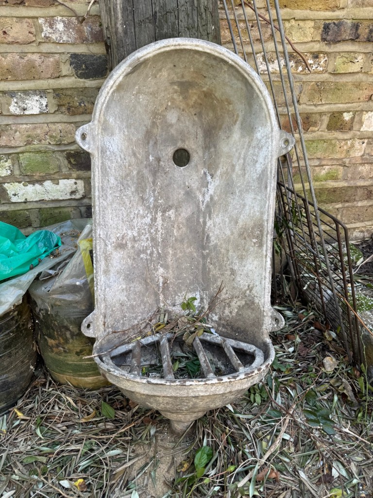 First, we brought in a team to fell trees and clear weeds and undergrowth. There was an Amazon-like population of mosquitoes living in that garden. We’ve disturbed them, and they are angry, but hopefully, they are, as we speak, seeking new accommodations. In the garden (and house), we found a few treasures and lots of junk.